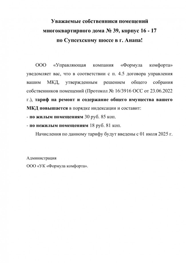 Повышение тарифа на содержание и ремонт жилых и нежилых помещений