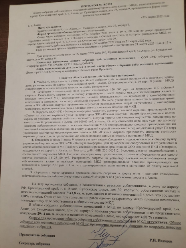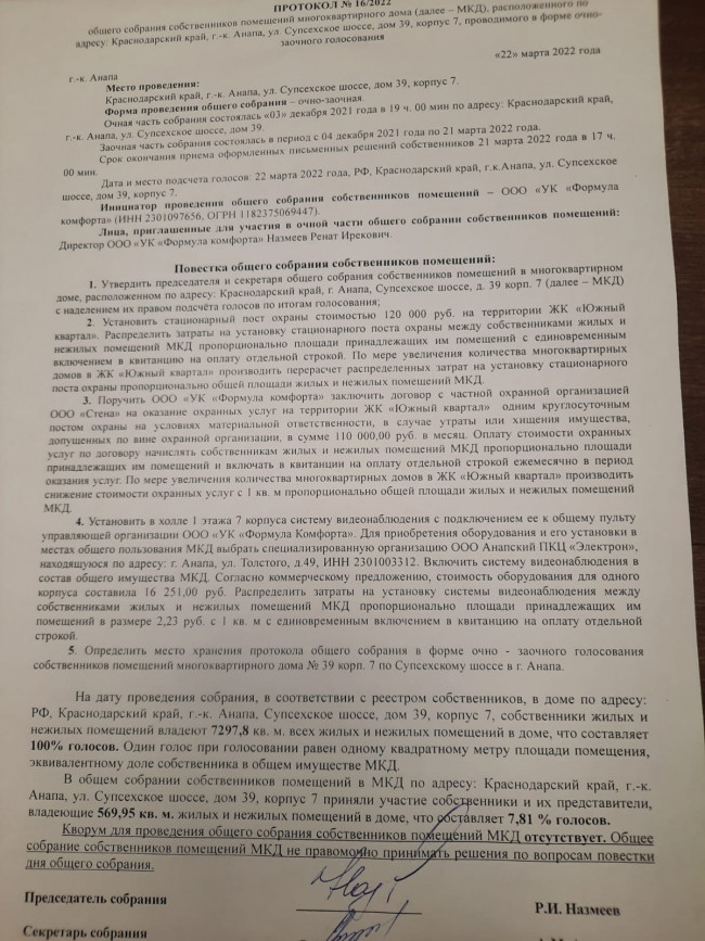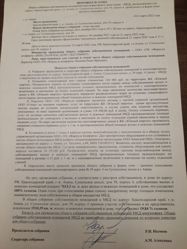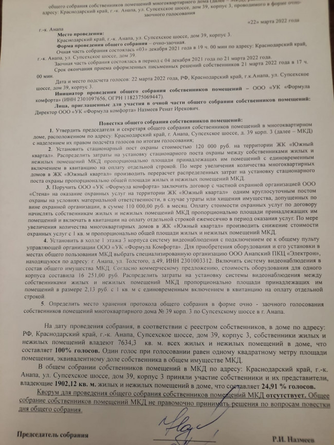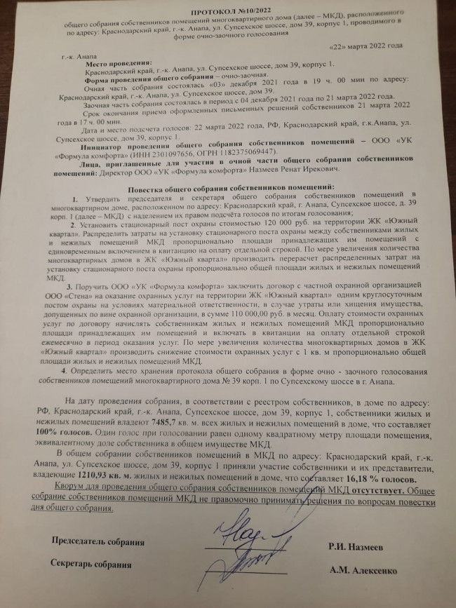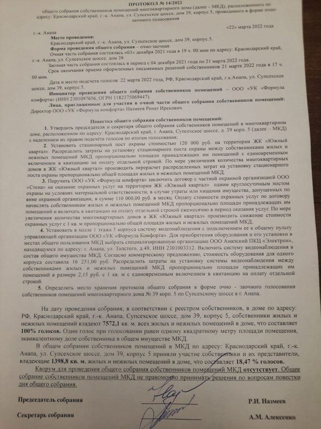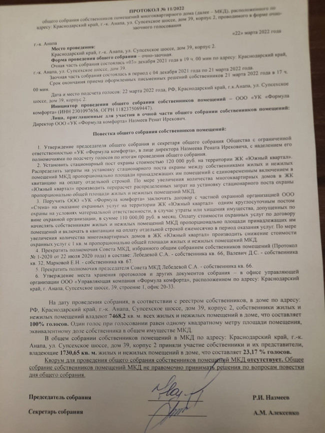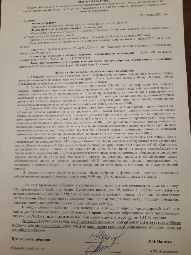 Протоколы общего собрания собственников от 22.03.22