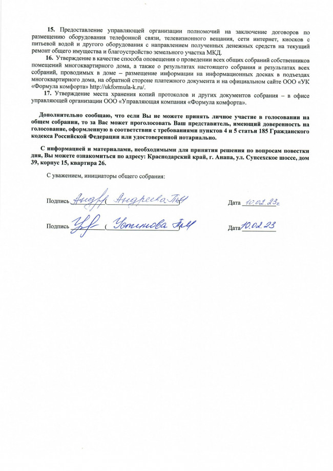 Извещение общего собрания собственников 15 корпус