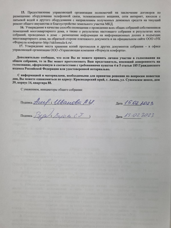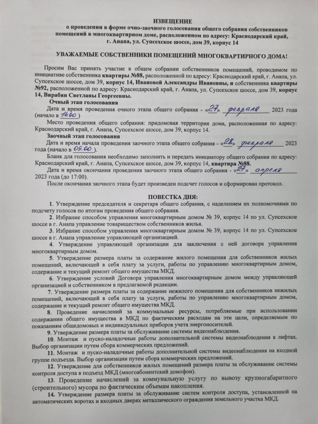 Извещение о проведении общего собрания собственников 14 корпуса