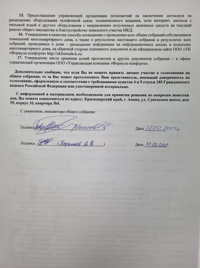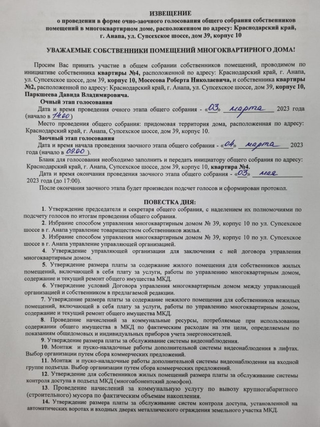 Извещение о проведении общего собрания собственников 10 корпуса